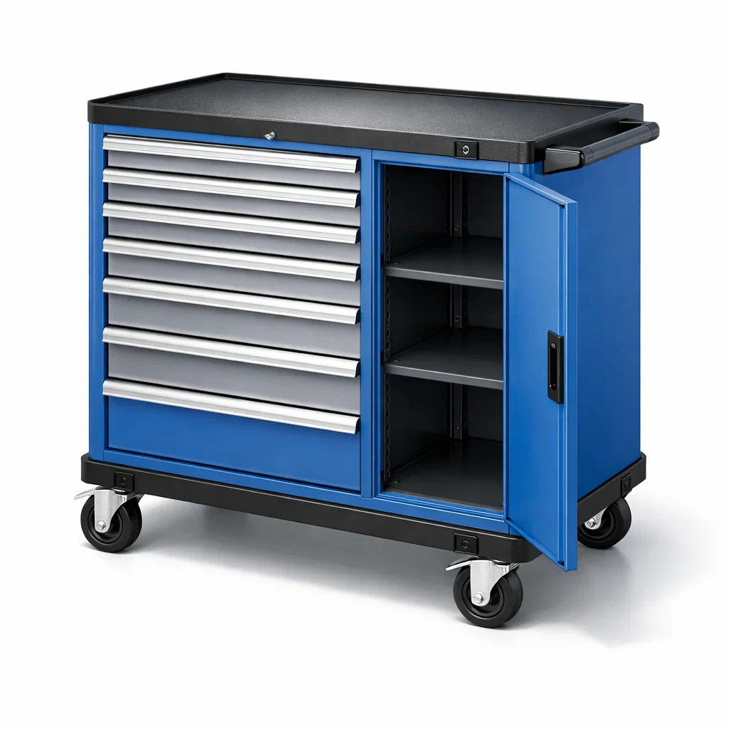 - Composants: 7 tiroirs, 1 compartiment avec 3 étagères, dispositif de verrouillage